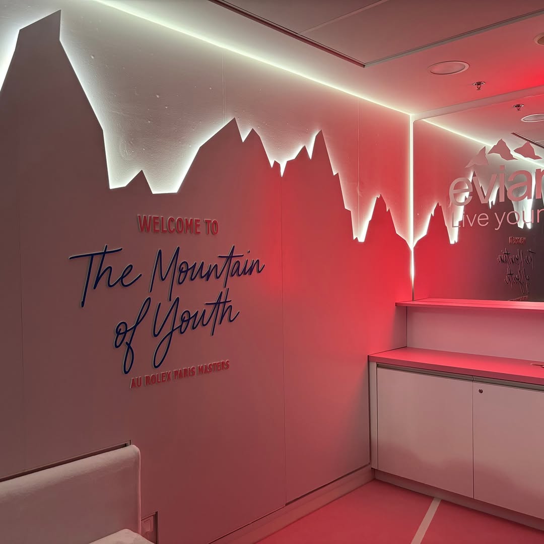 À l’occasion du Rolex Paris Masters 2025, Graphik a eu le plaisir d’accompagner l’agence LAFOURMI dans la réalisation d’un stand unique autour du concept “The Mountain of Youth” d’Evian